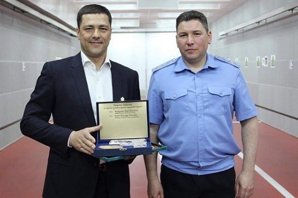 В качестве награды ему вручили специальный переходящий приз — хрустальный пистолет.