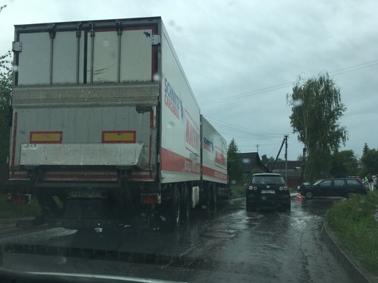 На улице Новогаражной столкнулись фура и легковушка