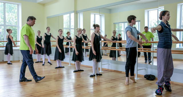 Вчера, 8 июня, Заслуженный деятель искусств, основатель и руководитель «Имперского Русского Балета» Гедиминас Таранда дал мастер-класс воспитанникам Образцового хореографического коллектива «Жемчужина». Занятие проходило в танцевальном зале Драматического театра.