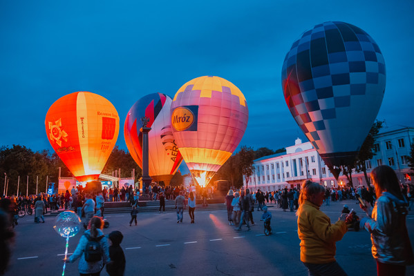 Красивую точку 23-й Международной встречи воздухоплавателей в Великих Луках поставило ночное свечение. Огромные яркие аэростаты расправили свои разноцветные купола на площади Ленина, чтобы подарить зрителям незабываемое по красоте зрелище — светящиеся в сумерках гигантские воздушные фонарики. Надо отметить, что на площади собралось немало горожан, чтобы посмотреть на аэростаты, сделать фото на память и проводить воздухоплавателей. Они улетели, но обещали вернуться! До встречи в 2019 году!