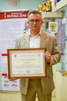 Диплом Фэйр Плэй вручил ректор ВЛГАФК Вячеслав Шляхтов на торжественном открытии выставки «Играй с открытым сердцем!», посвященной ЧМ-2018 по футболу.