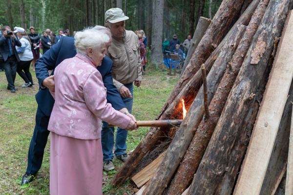 Два символических костра Дружбы — партизанский и молодежный — по традиции зажгли участники 59-й международной встречи ветеранов Великой Отечественной войны и партизанского движения России, Беларуси и Латвии на границе трех государств в воскресенье, 1 июля.