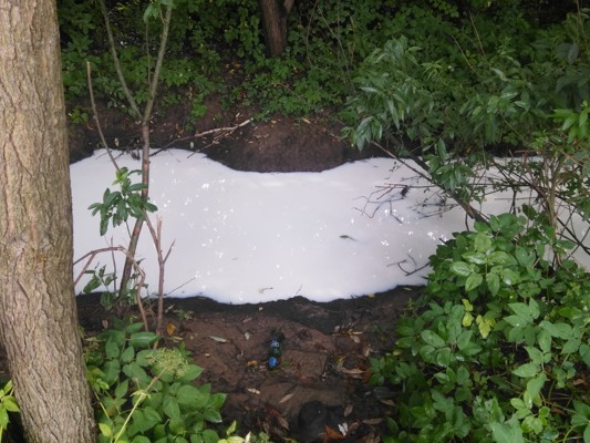 В распоряжение Луки.ру попало фото, на котором изображена «молочная река». Фото сделано вблизи улицы Золотковской. Каким образом произошел выброс и что именно вылили в ручей, а самое интересное — кто это совершил, пока неизвестно.