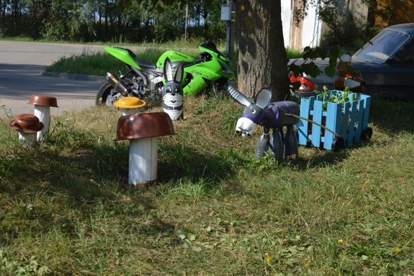 В деревне Переслегино прошла акция поделок «Подарок моему двору». Она стала доброй традицией для местных жителей, которые из года в год креативно к ней подходят, используя всевозможные подручные материалы и фантазию. Сколько причудливых фигур, интересных композиций создано их руками. Во многих дворах ожили персонажи известных мультфильмов, детских сказок.