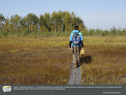 Фотовыставка «Осень» — это впечатляющие болотные пейзажи, яркие осенние краски, Полистовские растения и животные, и гости болота — люди, запечатленные фотографами на просторах заповедника. Авторы снимков: Андриан Колотилин, Александр Рябинин, Михаил Яблоков.