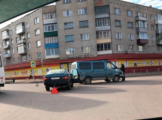 На перекресте проспекта Гагарина и улицы Дьяконова столкнулись два автомобиля — «Фольксваген» и «Соболь».