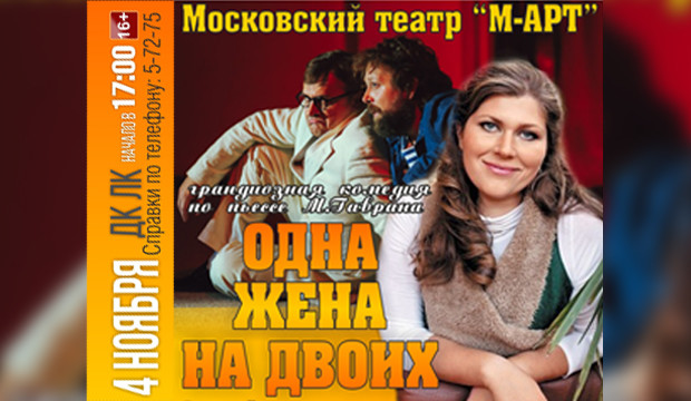 4 ноября в 17:00 на сцене ДКЛК впервые в Великих Луках спектакль «Одна жена на двоих» (16+)