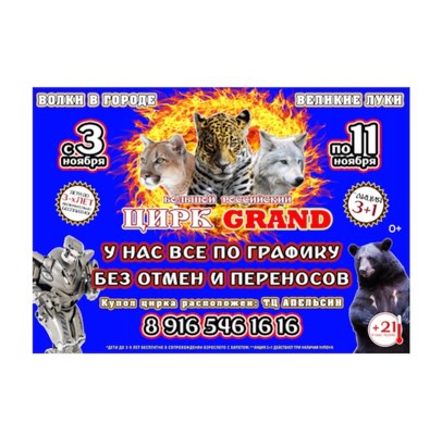 «Прошлый приезд одного небольшого цирка в город Великие Луки запомнился великолучанам не столько красочными представлениями, сколько бестактностью: отменяли и переносили представления, коверкали заявленную программу», — рассказывает администратор цирка «Гранд» Андрей. – К сожалению, такое безответственное отношение к зрителям, как у сотрудников цирка, который приезжал ранее, сформировало у великолучан недоверие к циркам вообще. Цирк «Гранд» гарантирует соблюдение графика выступлений и шикарное шоу, которое порадует всех!».