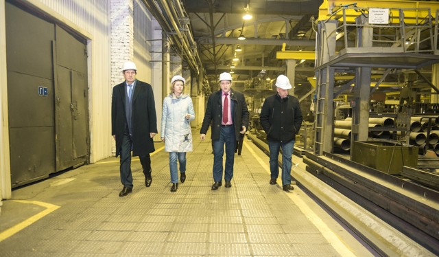 Нинель Салагаева вместе с Николаем Козловским осмотрели основные цеха завода электротехнического оборудования, где ознакомились с особенностями заготовительным и сварочным производством, побывали также в цехах механической обработки, металлопокрытий и сборки.