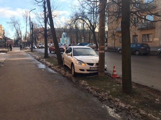 Столкнулись автомобили Hyundai ix35 и Mitsubishi Lancer. По всей видимости, после столкновения, автомобиль Mitsubishi Lancer вылетел на обочину, прилегающую к тротуару и врезался в столб.