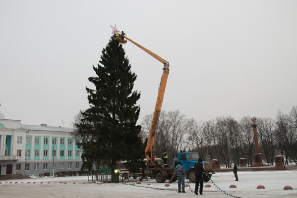 Сегодня, 17 декабря, в Великих Луках началось украшение главной городской ели.