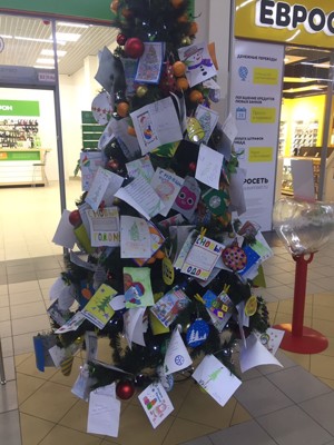 Елка желаний с письмами детей Деду Морозу установлена в «Апельсине», напротив магазина «Shagal».