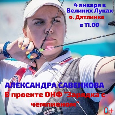 «4 января в 11:00 в городе Великие Луки состоится «Зарядка с чемпионом» (0+). Нашим гостем станет великолучанка, заслуженный мастер спорта России по стрельбе из лука, спортсменка, активистка и просто красавица Александра Савенкова. Несмотря на свою занятость Александра с радостью согласилась поддержать акцию «Зарядка с чемпионом» и пообщаться с великолучанами», — сообщает на своей странице в соцсети сопредседатель регионального штаба ОНФ, депутат Псковского областного депутат Всеволод Козловский и приглашает жителей города с пользой провести время.