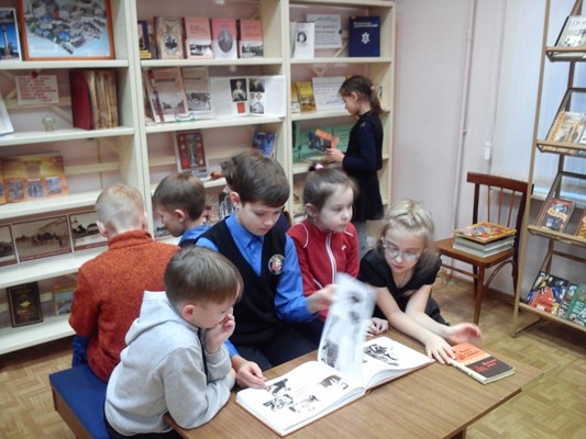 После мероприятия третьеклассники знакомились с книгами, которые размещены на экспозиции, посвящённой Дню освобождения города Великие Луки от немецко-фашистских захватчиков.