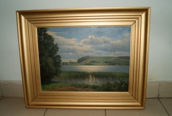 Согласно экспертному заключению, живописная картина в раме «Пейзаж с озером» (условное название), с авторской подписью, написанная на холсте масляными красками, является произведением искусства и относится к категории культурных ценностей. Сохранность картины удовлетворительная.