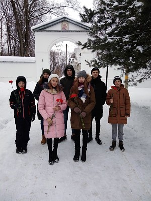 Ребята возложили цветы на могилу Петра Ивановича на Казанском кладбище.