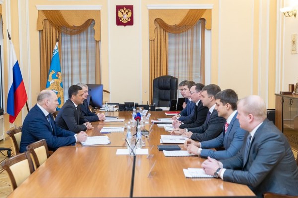 Актуальные вопросы развития сети автомобильных дорог Псковского региона обсудили в четверг, 24 января, на рабочем совещании Губернатор области Михаил Ведерников и руководитель Федерального дорожного агентства Андрей Костюк. Мероприятие прошло в Администрации области в рамках официального визита главы Росавтодора в регион. Во встрече также приняли участие заместитель руководителя Федерального дорожного агентства Евгений Туриев, руководство ФКУ Упрдор «Северо-Запад» и представители регионального Комитета по транспорту и дорожному хозяйству.