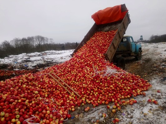 В соответствии с Указом Президента Российской Федерации от 29 июля 2015 г. N391 «Об отдельных специальных экономических мерах, применяемых в целях обеспечения безопасности Российской Федерации» яблоки, общим весом 19,89 тонны, уничтожены механическим способом на полигоне твердых бытовых отходов в городе Себеж Псковской области.