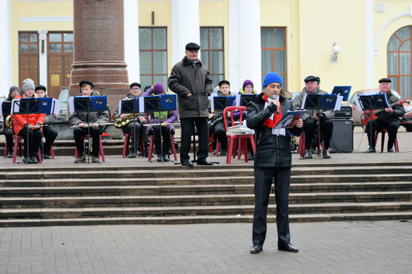Для великолучан, собравшихся на площади Рокоссовского, выступили образцовый театр детской песни «Летний дождь» и городской духовой оркестр. На мероприятии присутствовали великолучане разного возраста.