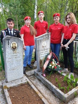 Юнармейцы не только благоустроили захоронение, но и почтили память Александра Логинова минутой молчания и возложили на могилу корзину с цветами.
