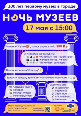 В этом году акция «Ночь музеев» (6+) в Великих Луках будет посвящена 100-летнему юбилею Великолукского Краеведческого музея.