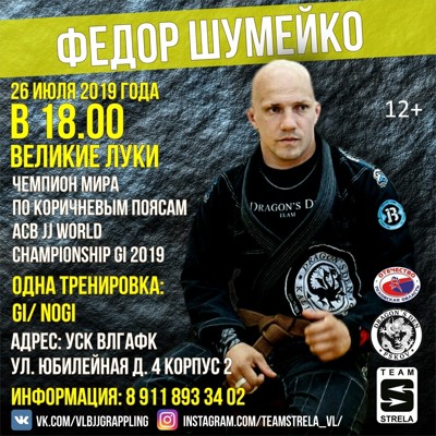 Чемпион мира по джиу-джитсу Федор Шумейко проведет открытую тренировку для великолучан (12+)