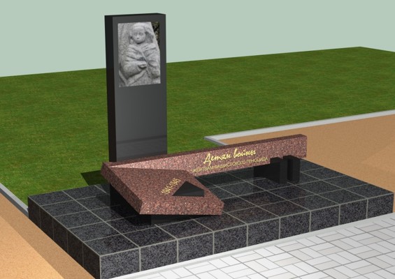 В частности, будет произведен ремонт двух монументов — памятника подпольщикам и памятника детям войны. Эскизы примерных вариантов отремонтированных памятников представлены ниже.