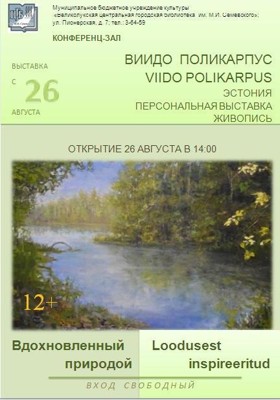 26 августа в 14:00 в конференц-зале Центральной городской библиотеки им. М. И. Семевского состоится презентация выставки художественных работ Виидо Поликарпуса «Вдохновленный природой», сообщили на сайте библиотеки.