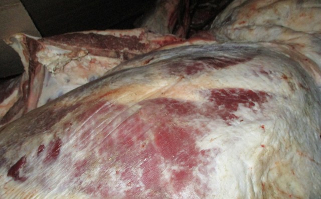 В ходе осуществления проверочных мероприятий было установлено, что в багажном отделении транспортного средства перевозилось мясо говядины и говяжьи субпродукты, общим весом 1,5 тонны, без ветеринарных сопроводительных документов, клейм, маркировок, подтверждающих безопасность и происхождение товара. Кроме того, данное транспортное средство оказалось не предназначено для перевозки мясосырья – холодильное оборудование отсутствовало.