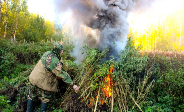 В Псковской области полицейскими и волонтерами уничтожен крупный участок дикорастущей конопли