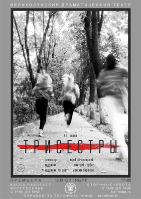 12 октября в 17:00 Великолукскиий драматический театр откроет свой сотый театральный сезон. В этот день состоится премьера спектакля «Три сестры» (16+) Антона Чехова, режиссер-постановщик Юрий Печенежский.