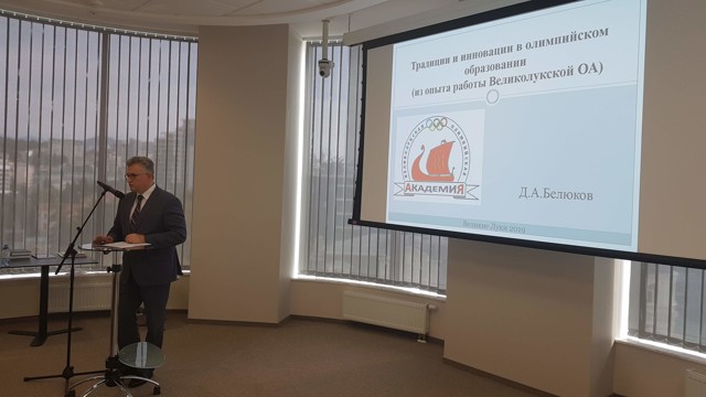 С докладом «Традиции и инновации в олимпийском образовании (из опыта работы Великолукской олимпийской академии)» выступил представитель Великолукской олимпийской академии, член комиссии по олимпийскому образованию ОКР Дмитрий Белюков. В своем выступлении он акцентировал внимание на таких формах работы и мероприятиях, как соревнования среди дошкольников «Юные олимпионики», квест-игра «Равнение на олимпийцев», интеллектуальный турнир «Знатоки олимпизма», издание «Олимпийского дневника школьника Псковской области», деятельность Музея спорта и олимпийского движения Псковского края и др.