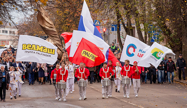 Шествие колонны заводчан на городскую площадь, где уже шла праздничная программа «ВЕЛМАШ-75», возглавляли знаменная группа и бравые парни с барабанами наперевес, которые заводили народ темпераментными ритмами. Уже на месте, сразу за лаконичным приветствием от руководителя ВЕЛМАШа и генерального директора по производству концерна PALFINGER (в состав которого «ВЕЛМАШ» входит с 2014 года) Мартина Цендера состоялась презентация шестнадцатикратного победителя ралли «Дакар», команды «КАМАЗ-Мастер», партнером которой является концерн PALFINGER. У многих великолучан благодаря этой встрече сегодня есть фотографии с повидавшим мир автомобилем и его легендарным экипажем.