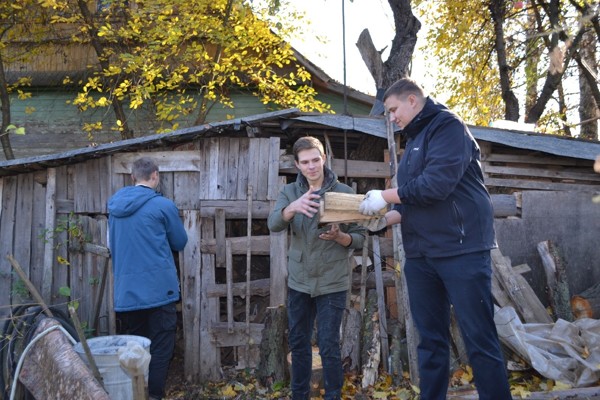 16 октября волонтеры помогали великолучанке, проживающей в частном доме на проезде Большой, дом 3 Валентине Алексеевне Никоновой. Машина дров в умелых руках семи волонтеров была сложена стремительно и уверенно.