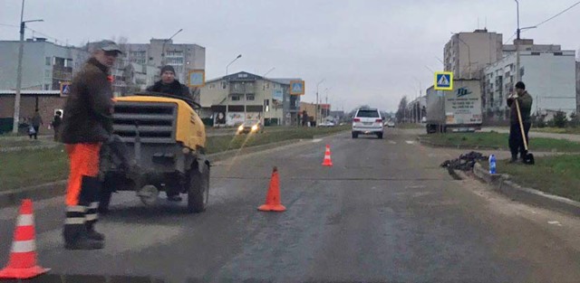На улице Гражданской ведутся работы. Рабочие устанавливают искусственные неровности перед нерегулируемым пешеходным переходом.