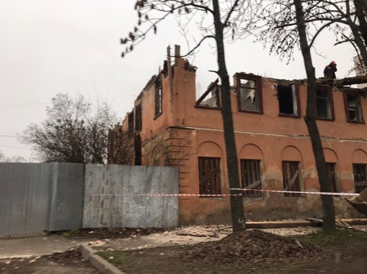 Сегодня работы по разборке ведутся в старом здании ДОСААФ на улице Лизы Чайкиной.