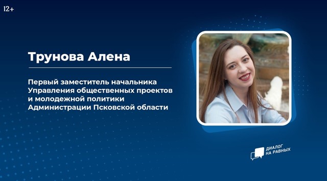 29 ноября, в 15.00 в актовом зале Управления образования города Великие Луки пройдет встреча в рамках проекта «Диалог на равных» (12+). Спикером проекта станет первый заместитель начальника Управления общественных проектов и молодёжной политики Администрации Псковской области Алена Трунова.