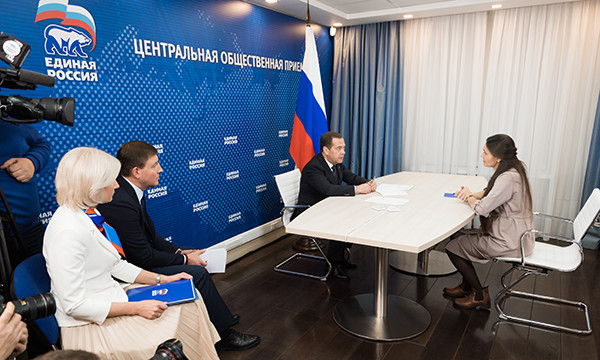 Председатель «Единой России», глава Правительства Дмитрий Медведев провел в центральной общественной приемной Партии прием граждан. Заявители подняли вопросы обеспечения инклюзивного обучения школьников с ограниченными возможностями здоровья, выделения жилья детям-сиротам, возможного изменения правил дорожного движения и озвучили частные проблемы.