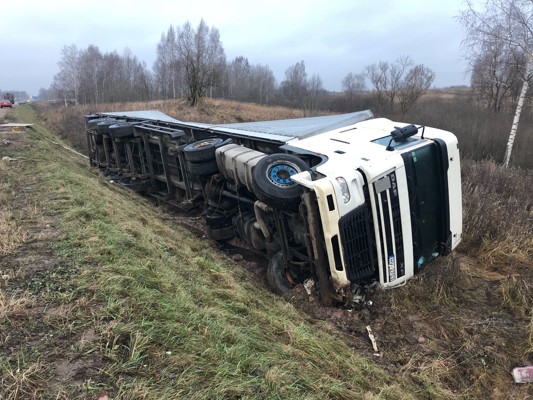 Сегодня в Великолукском районе поднимали грузовик, который оказался в кювете в ночь с 5 на 6 декабря. ДТП произошло неподалеку от деревни Платоново. Водитель не справился с управлением и съехал с обочины. К счастью, он не пострадал.