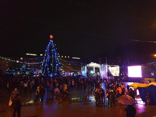 Сегодня, 26 декабря, на главной городской площади Великих Лук начался праздник открытия Новогодней елки. У сцены собираются горожане, которые не испугались дождя! Для них исполнят песни и танцы лучшие творческие коллективы города на Ловати. На площади Ленина работают торговые точки, в которых горожане смогут купить лакомства и сувениры.