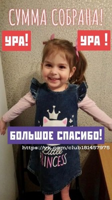 Неравнодушные люди собрали для девочки со страшным диагнозом 3 миллиона рублей. Теперь у семьи Даниленко появился шанс победить рак. Сейчас Дарина Даниленко отправляется в турецкую клинику LIV HOSPITAL, где ей предстоит операция. Следить за актуальными новостями о состоянии Дарины можно в сообществе сбора.