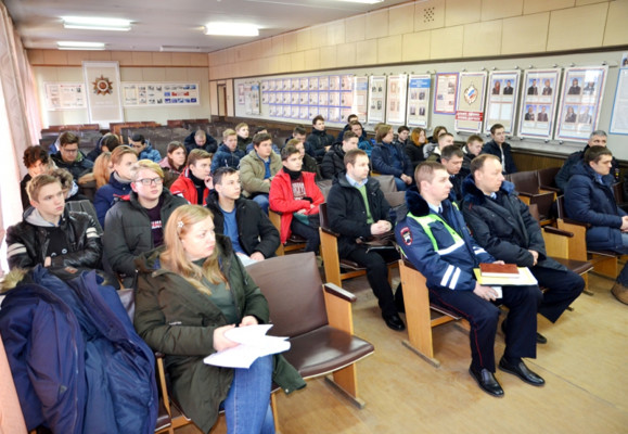 На встречу в ОМВД России по городу Великие Луки пришли более тридцати студентов Великолукской сельскохозяйственной академии. Беседу с ними провели председатель Общественного совета при ОМВД России по городу Великие Луки Валерий Муравьев, начальник уголовного розыска ОМВД подполковник полиции Андрей Дельцов и начальник штаба ОМВД подполковник внутренней службы Татьяна Рябова.