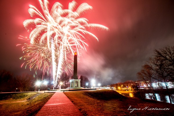 Праздничный салют украсил небо Великих Лук в День Защитника Отечества