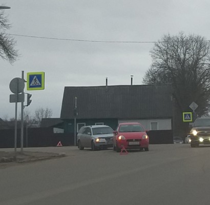 Сегодня в Великих Луках произошло ДТП. На перекрёстке улиц Силина и Торфобрикетной дорогу не поделили два автомобиля «Фольксваген» и «Феат».