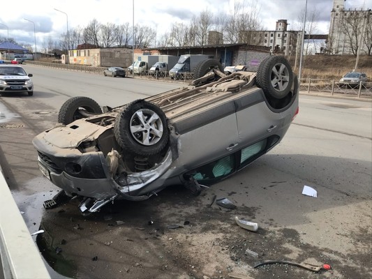 Сегодня, 19 марта, около 12:00 на великолукском путепроводе произошла серьезная авария. Столкнулись иномарки «Ниссан» и «Киа». В результате столкновения, «Ниссан» перевернулся.