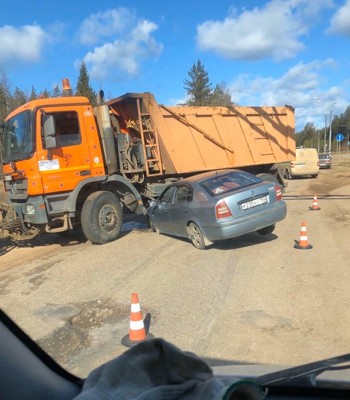 Фотофакт: Под Торопцем легковушка попала под грузовик