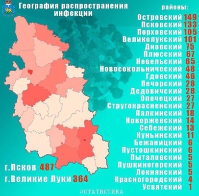 В инстраграме губернатора Псковской области Михаила Ведерникова появилась обновленная статистика по коронавирусу. За сутки в регионе заразились еще 98 человек. Число заболевших в Великих Луках неуклонно растёт вверх — 364 человека. В Великолукском районе заболели 101 человек.