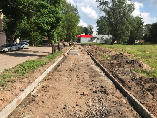 В Великих Луках на улице Дворецкой активно ведутся работы по ремонту тротуара. На данный момент выполняется установка бортового камня и устройство асфальтового покрытия. Протяженность объекта составляет более полутора километров.