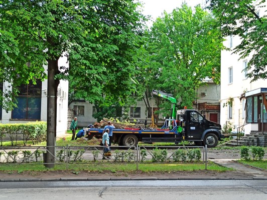 Рабочие убрали тополь, который упал и разбил окна в доме на проспекте Ленина
