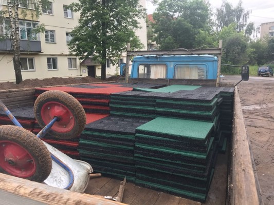 Сейчас рабочие укладывают плитку на территории снесенных старых бараков.